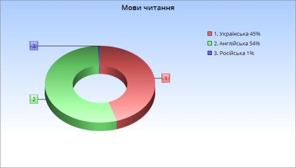 А от головний сюрприз 2020-го – це вибір книжок з точки зору мови написання. Обидва тренди доволі прогнозовані, але щоб аж так! Примо, торік я прочитала аж 1 (одну!) книжку російською. Звісно, відсоток російськомовного читання поступово скорочувався сам собою (полиця з нечитаними книжками цього не схвалює, я практично не торкаюся книжок, котрі купила 5-10 років тому). Секундо, вперше в моєму житті англомовне читання вирвалося вперед, ще й не в масштабах статистичної похибки. Так, тут чимало коміксів. Так, сюди включені книжки, з котрими я працювала. Але, але, але. Минулого року я почала активно (ну, як на себе) слухати аудіокнижки – і майже всі вони були англійською. Найдовша прочитана книжка – майже нескінченна Troubled Blood була англійською. І нарешті впали останні психологічні бар’єри – я перестала враховувати фактор “Але це англійською”, обираючи наступну книжку для читання. Ну, все ще трохи повільніше читаю, то й що? Від зменшення кількості прочитаних книжок стеля на книжкові полиці не впала, я ж перевірила.