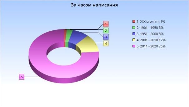 По-друге, здається, десь в глибині душі я вважаю читання не-новинок чимось протизаконним. Діаграма “віку” книжок вселяє жах і трем. Рік-переможець – 2019-й, з нього я прочитала 30 книжок. Але й минулий задніх не пасе – 22 книжки, причому зазвичай більшість з найсвіжіших книжок складають українські видання, а в 2020-му я здебільшого новинки англомовного ринку читала.